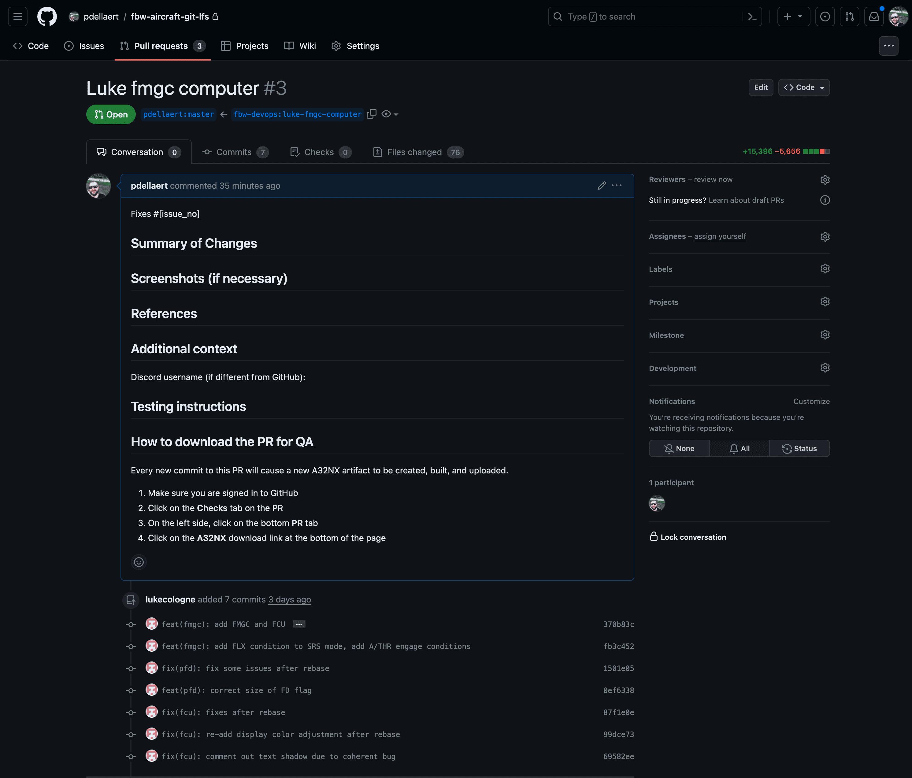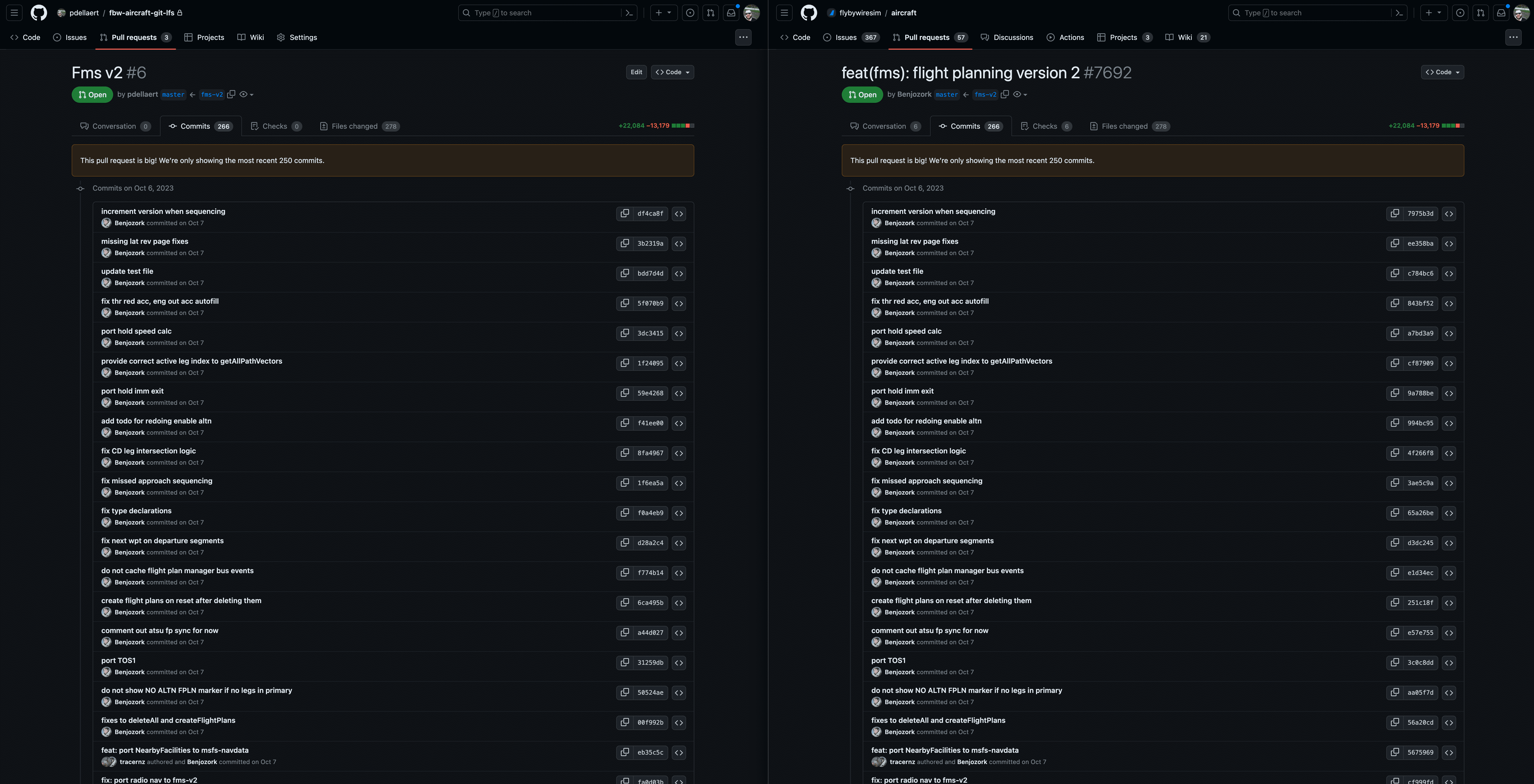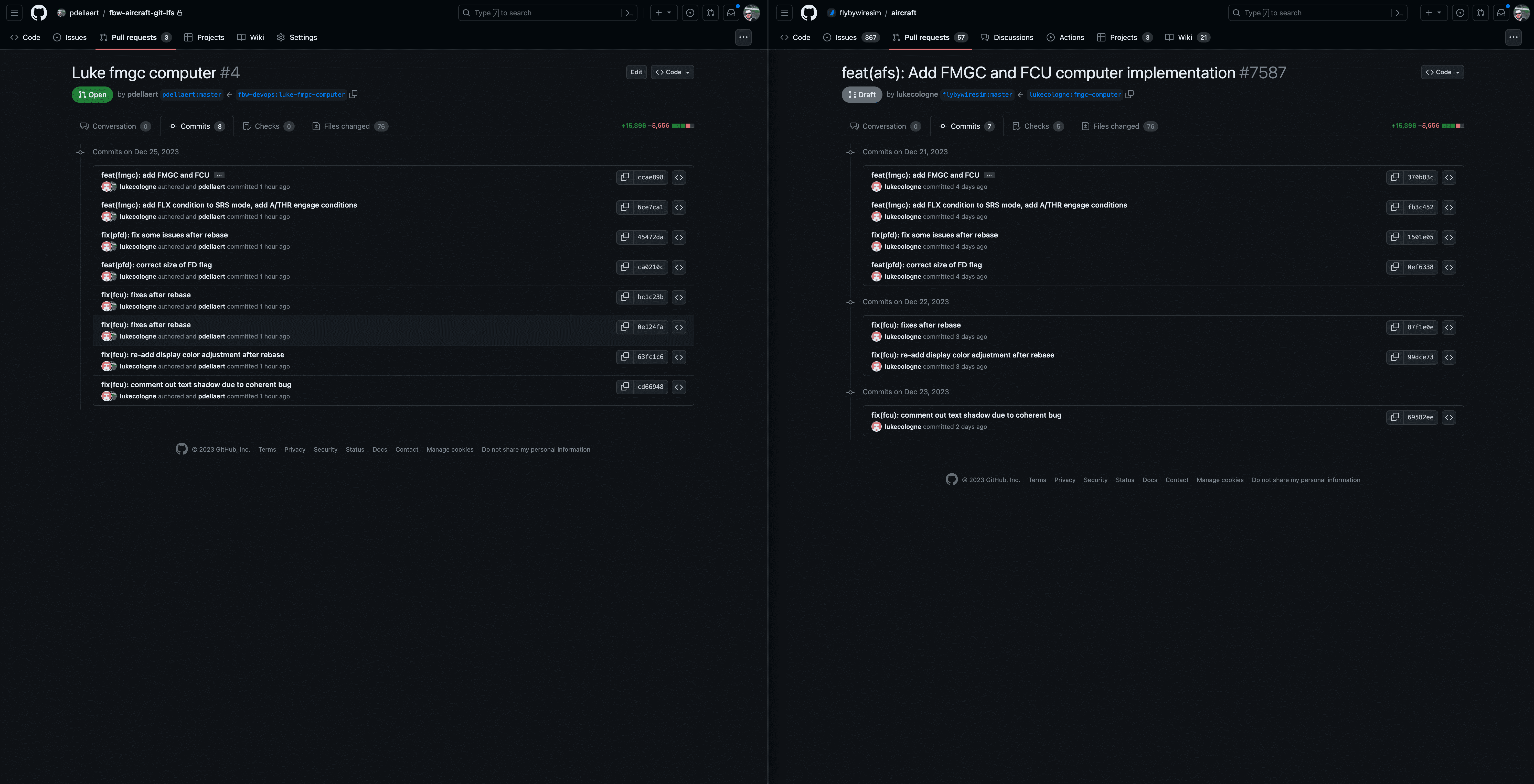 - The PR for Luke's FMGC Computer (uses rebase) gets migrated easily, but it seemed like there were files being deleted. There's one more commit for files being deleted which was not in the original PR. Might need investigation.