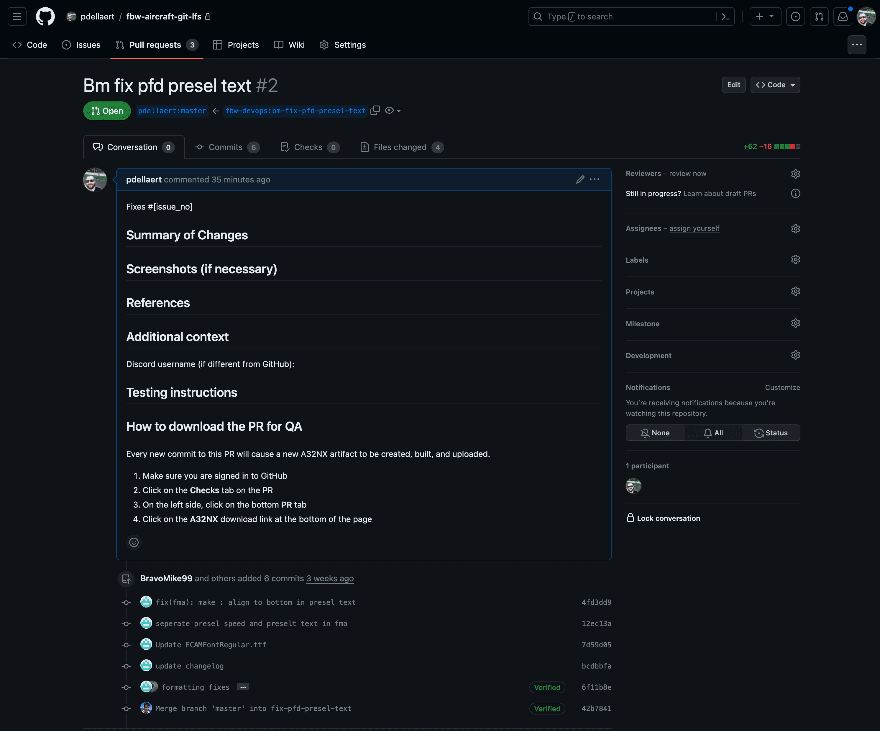 git remote add bravomike git@github.com:BravoMike99/a32nx.git git fetch bravomike git checkout bravomike/fix-pfd-presel-text git switch -c bm-fix-pfd-presel-text git push origin bm-fix-pfd-presel-text -