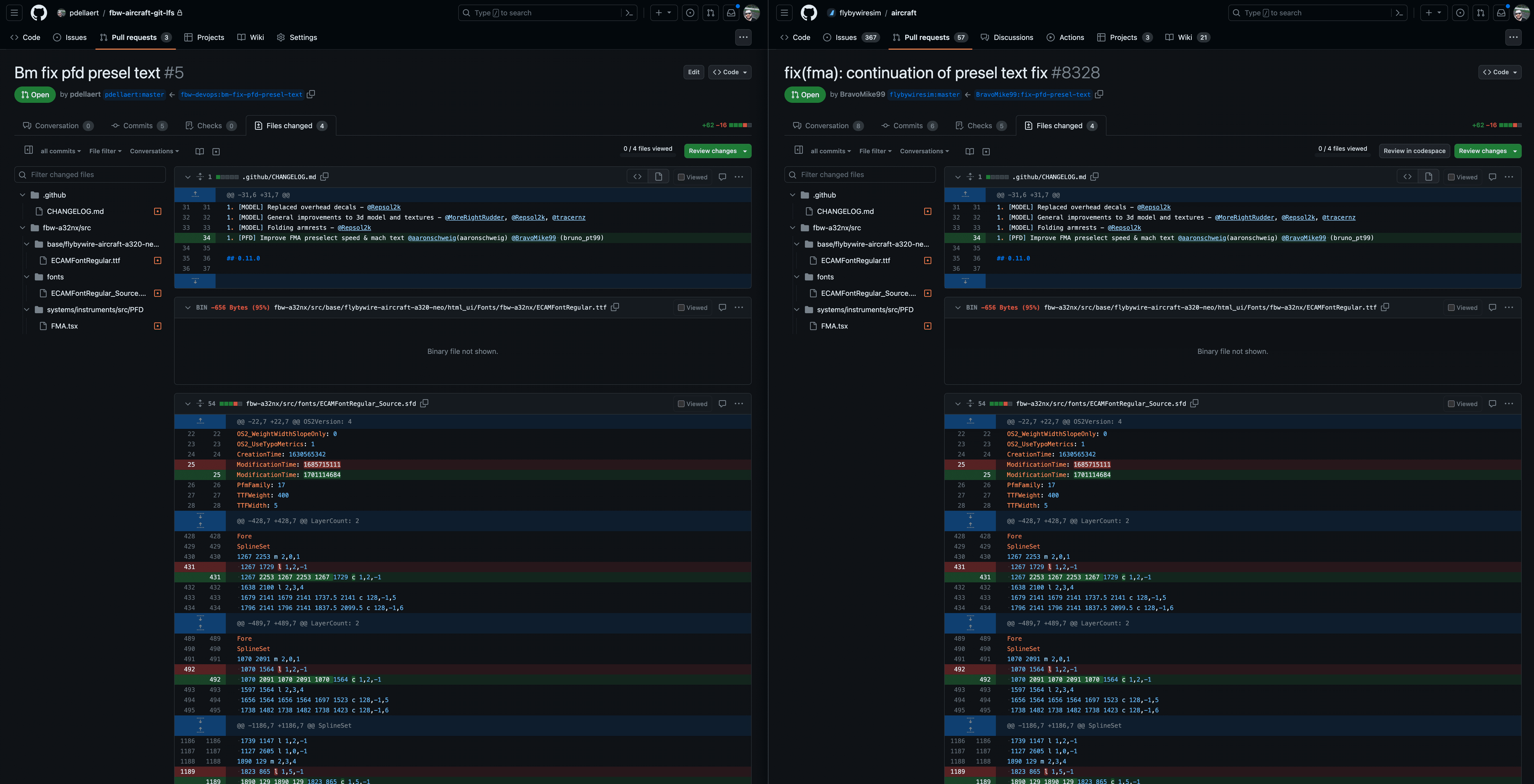 Create a PR on the pdellaert/fbw-aircraft-git-lfs repo for the bm-fix-pfd-presel-text branch