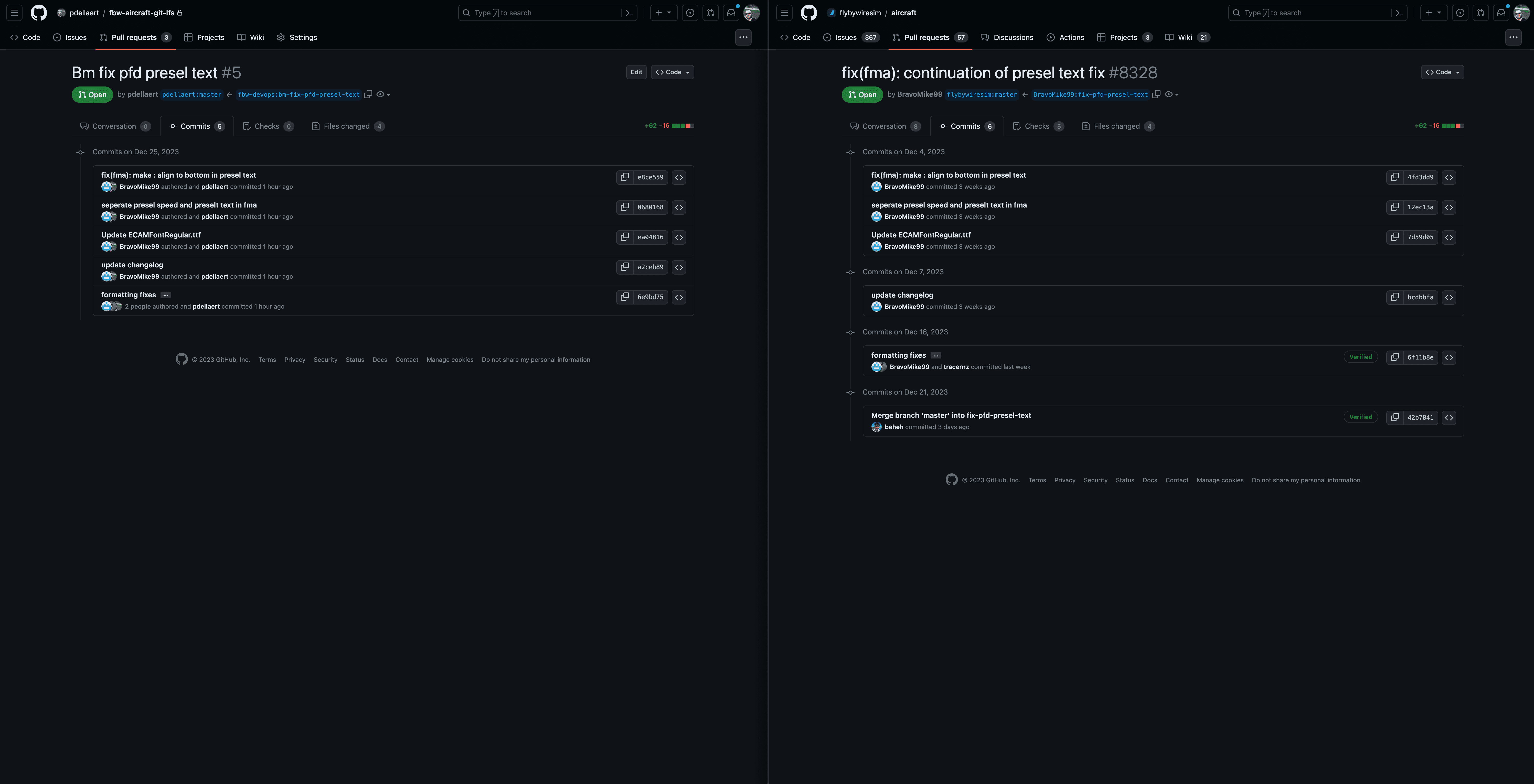 - The PR for BM's fix pfd presel text (uses merge) misses the merge commit at the end, this is because during the